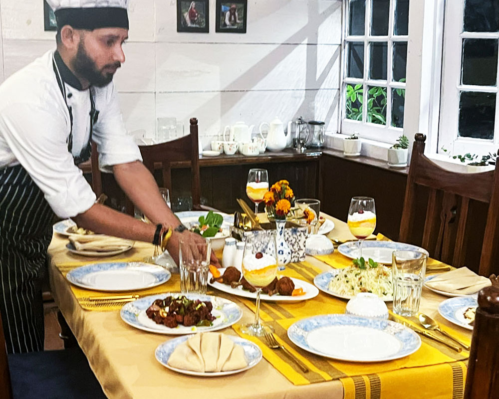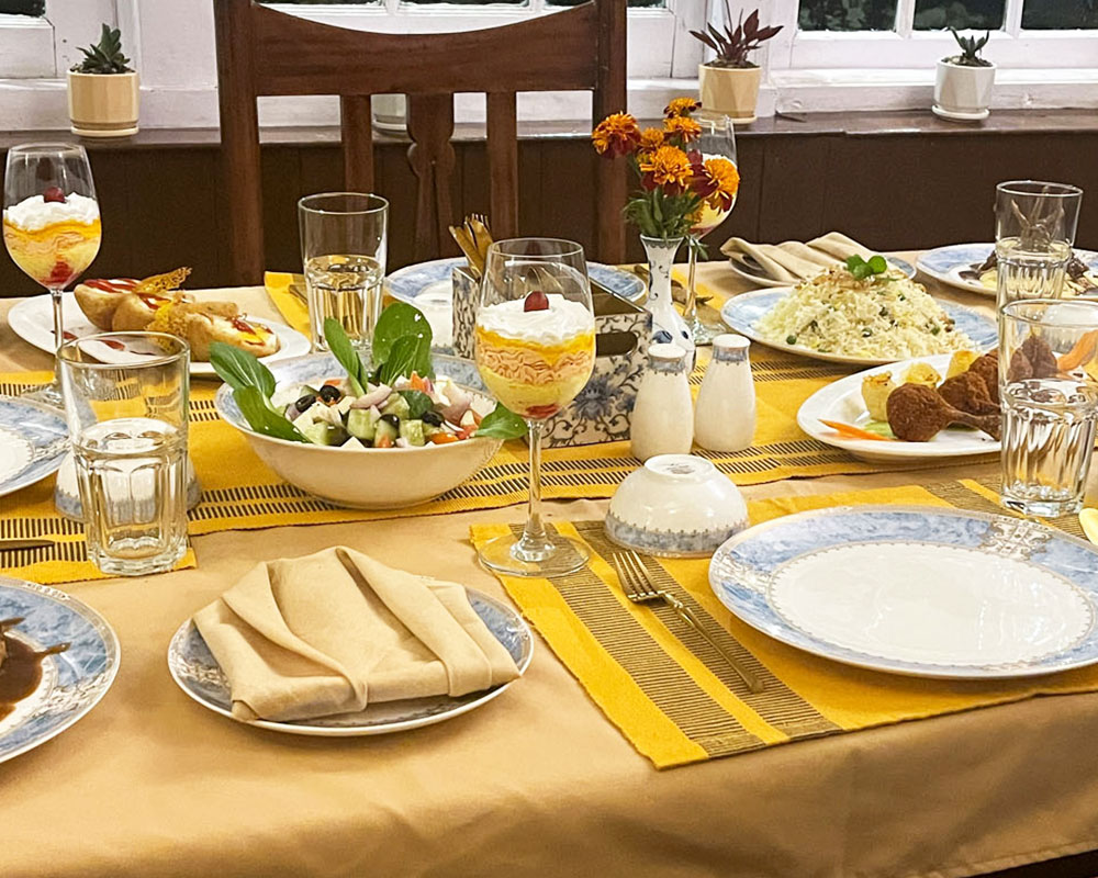 From sipping a cup of authentic Darjeeling Tea to savouring the range of flavorful and aromatic dishes, we ensure to fulfil your cravings. Our dining area is fused with rustic charm with a touch of modernity which can be felt from wooden textures and calming tones of white paint allowing you to immerse in the most soothing dining experience you can ever have.